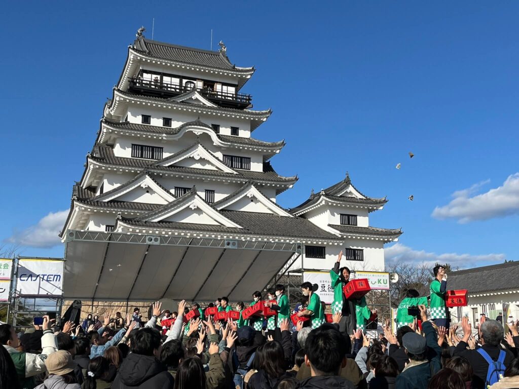 福まきは、福山城天守前広場にて、例年1月末から2月上旬の節分前に開催される、福山市の冬の風物詩ともいえる大規模イベントです。